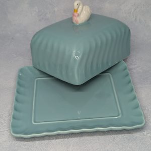 Beurrier Bleu en Céramique Rice surmonté d’un cygne