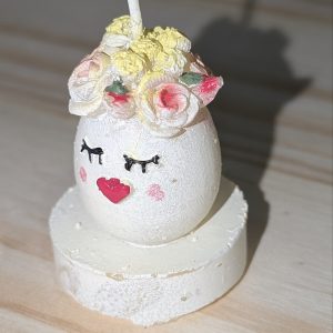Lot de 6 bougies œufs surmontées d'une couronne de fleurs avec socle argent pour une...