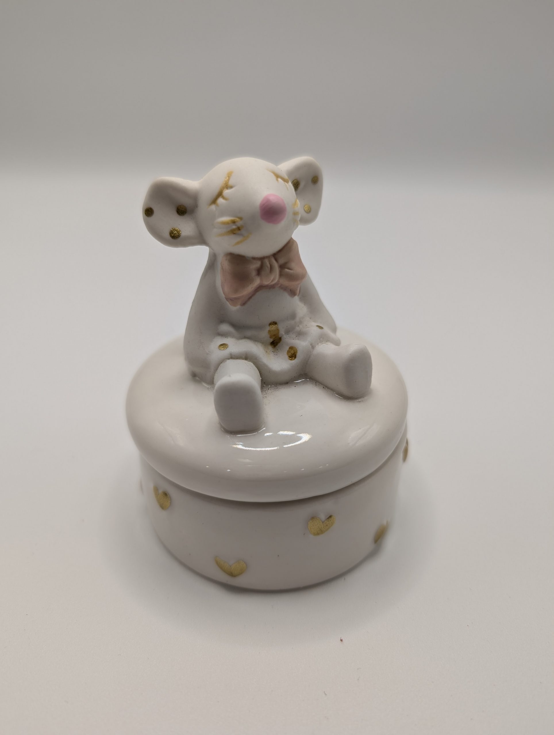 Boite à dents Souriceau avec cœur doré sur la base en céramique De la marque Mathilde...