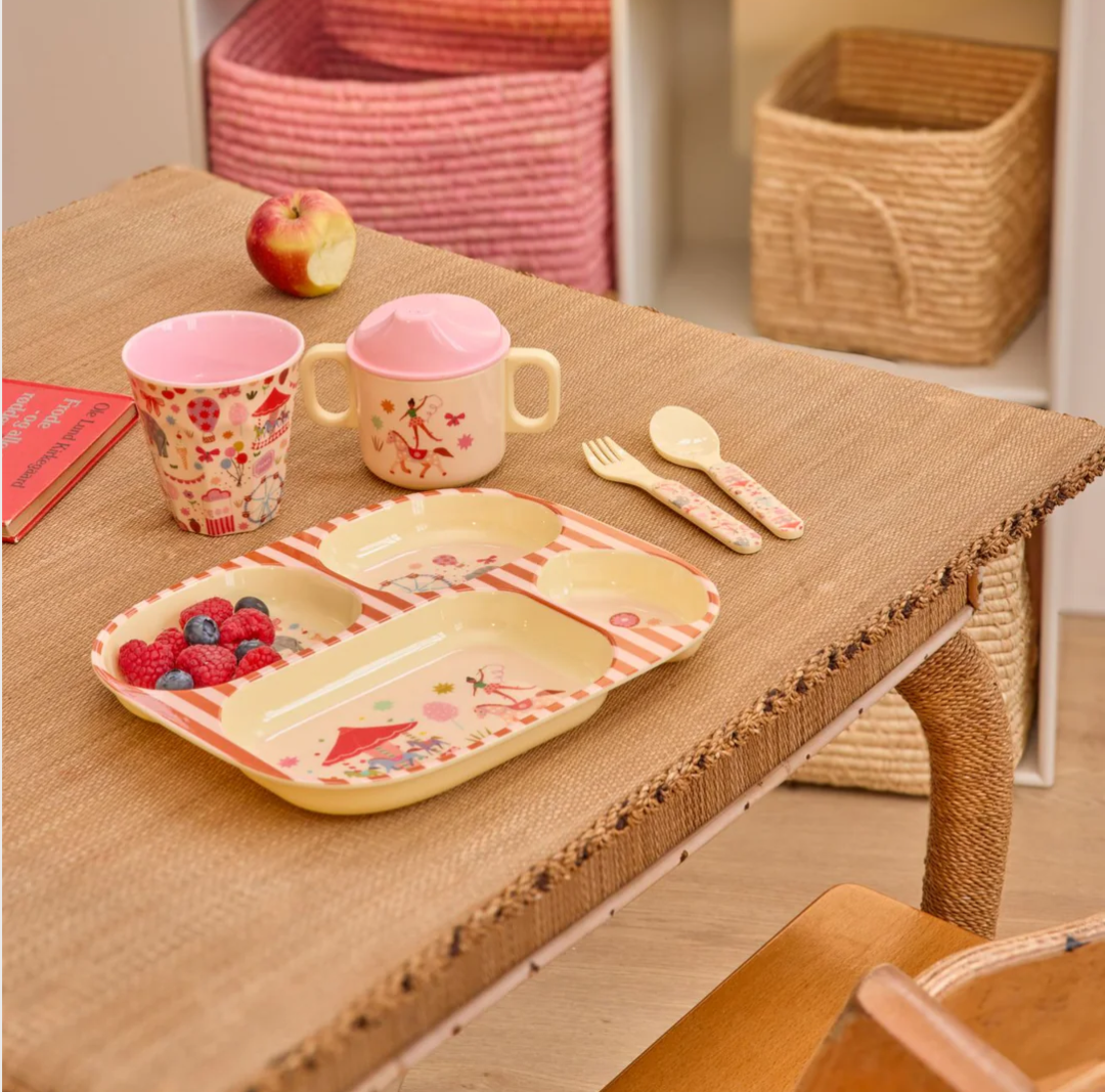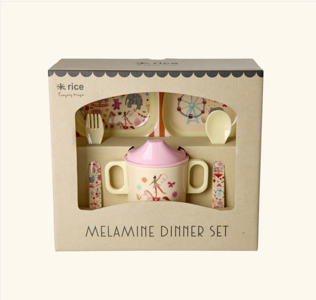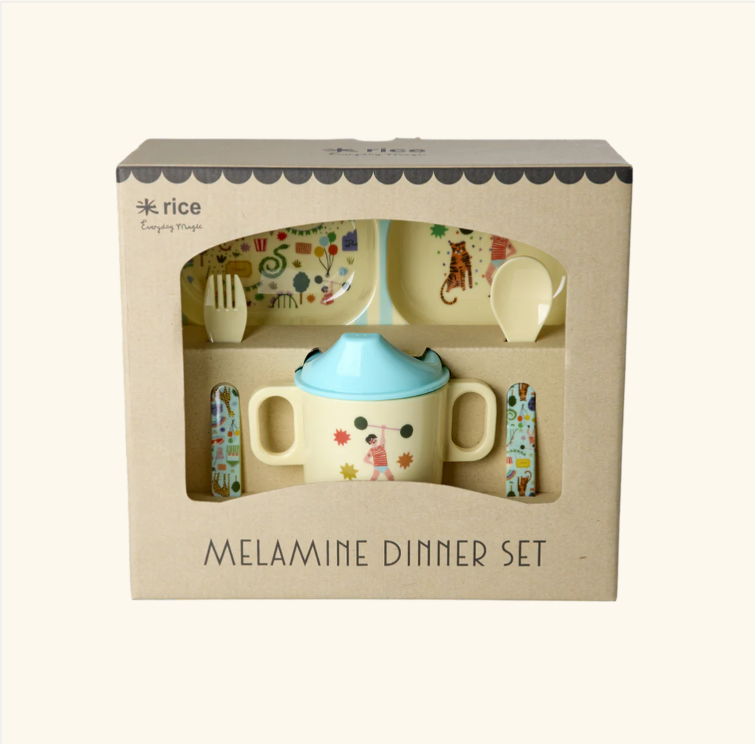 Set vaisselle bébé bleu vert Menthe cirque fun fair rice