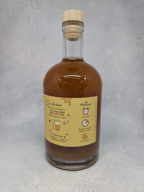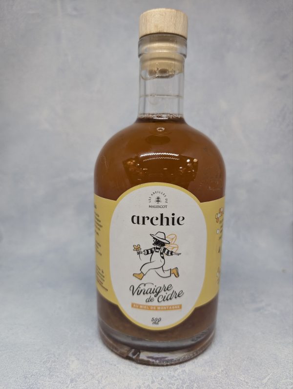 Archie a revisité un remède ancestral qui marie le vinaigre de cidre Archie et le miel biologique français de haute montage des Abeilles de Malescot.