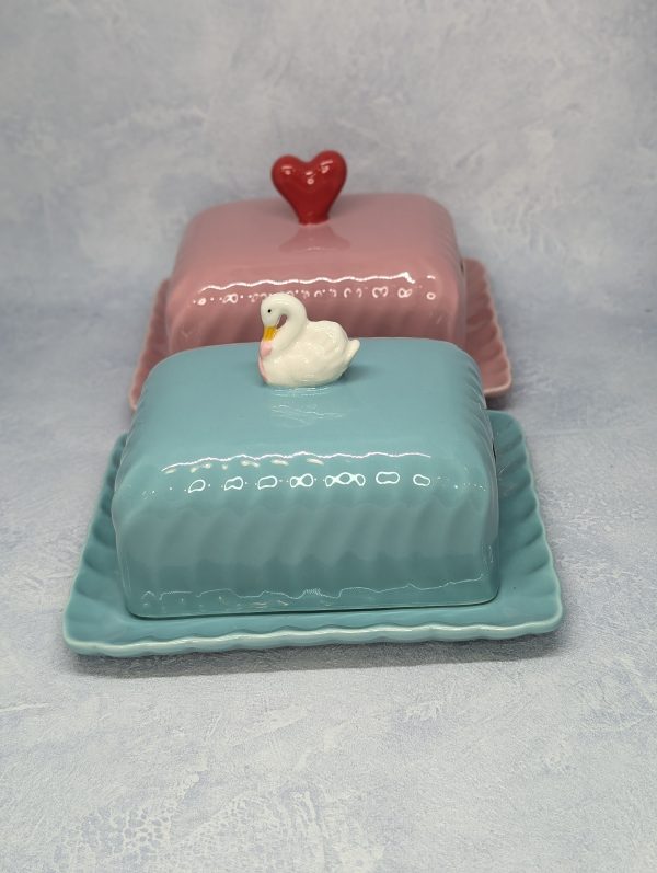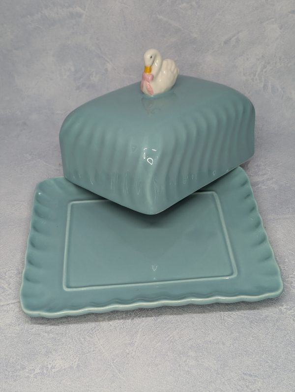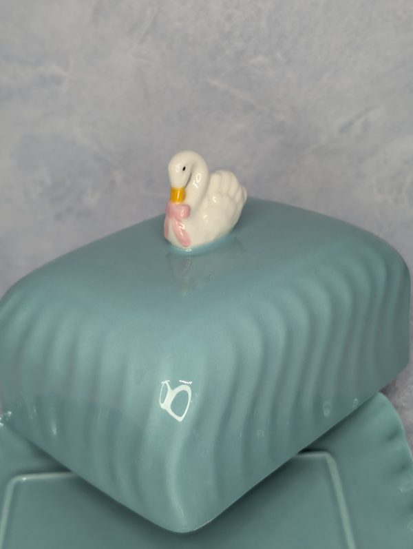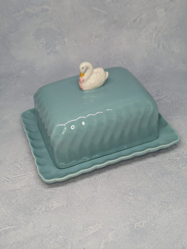 Beurrier Bleu en Céramique Rice surmonté d’un cygne