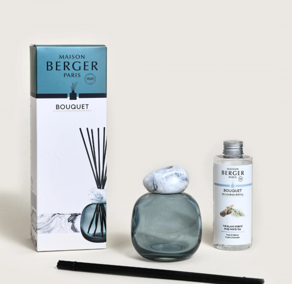 Diffuseur Maison Berger odeur Thé Blanc couleur fumé 180mL en verre