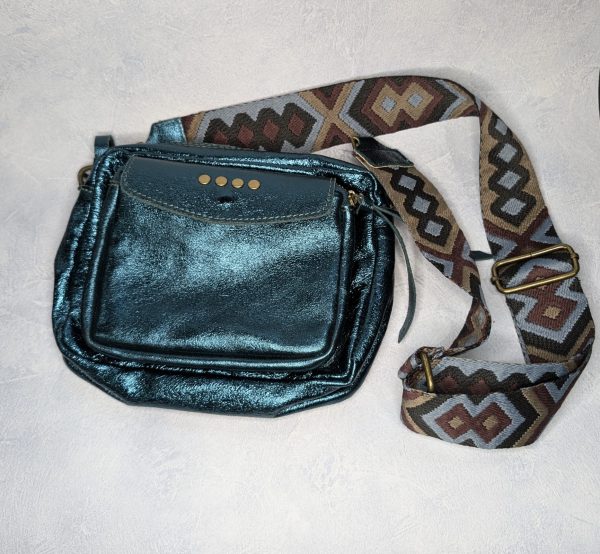 Sac en cuir avec une bandoulière large.