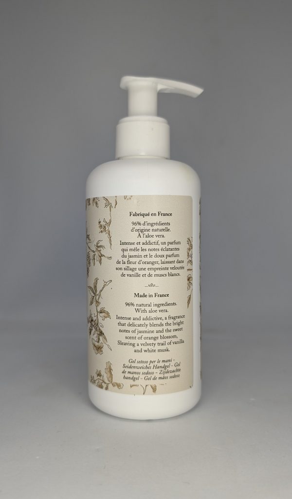 Ce gel pour les mains de 250 mL au parfum emblématique de Mathilde M la senteur Sublime Jasmin.